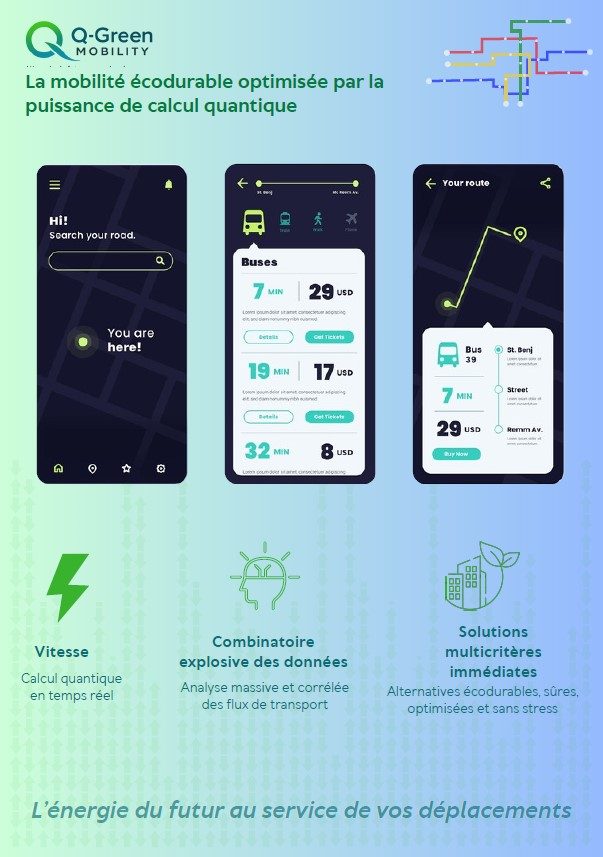 Q-Green Mobility conçoit et développe des applications sur smartphone inédites pour la mobilité écodurable, basées sur des technologies hybrides quantiques et classiques.
